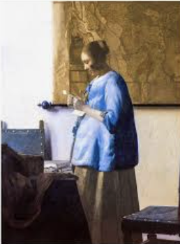 Vermeer. Femme en bleu lisant une lettre. Rencontre avec un chef
